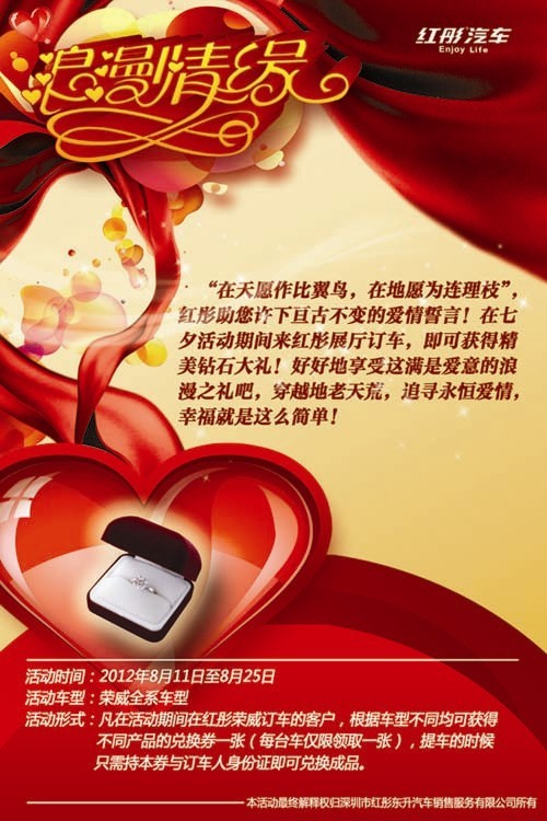 拥抱七夕节 红彤荣威购车送钻戒