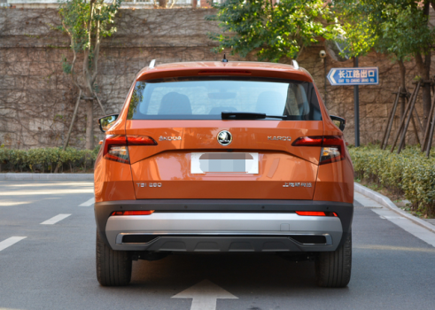 上汽斯柯达柯珞克的车身侧面造型几乎就是一台缩小版的柯迪亚克,平直硬朗的线条使其看起来充满了力量感。车身长宽高分别是4432/1841/1614mm,轴距为2688mm,比海外版KAROQ 2638mm的轴距增加了50mm,为消费者提供了更为宽敞、舒适的乘坐空间。车尾部分,新车的设计风格也与柯迪亚克高度相似,但更加简洁,也更为紧凑。保险杠上的银色护板和黑色包围营造出浓烈的越野气息。
