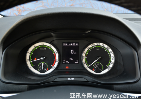 上汽斯柯达柯珞克方向盘造型与柯迪亚克的完全一致,两侧的多功能按键布局合理,按键手感出色,涵盖了多媒体、蓝牙电话以及行车电脑显示屏功能。仪表盘方面,传统的双圆式仪表盘外采用了白底的设计,与柯迪亚克一致。